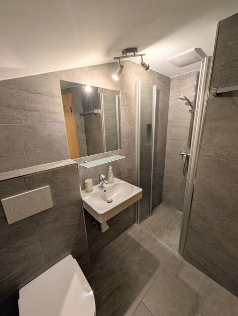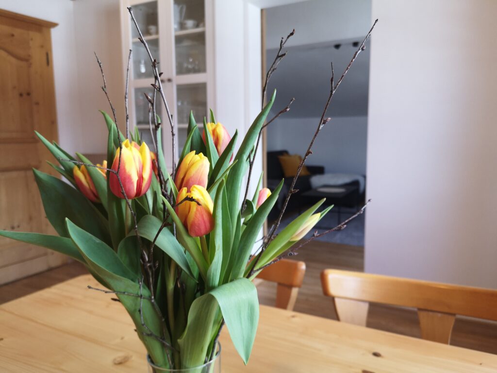 Die Wohnung befindet sich im zweiten Stockwerk unseres Hauses. Der geteilte Eingang befindet sich im ersten Stock. Die Wohnung ist in sich abgeschlossen und durch eine Tür verschließbar.